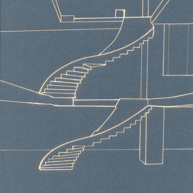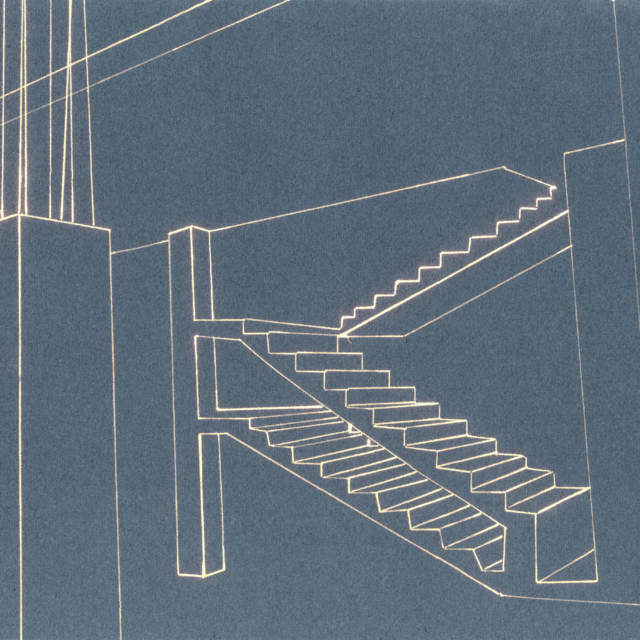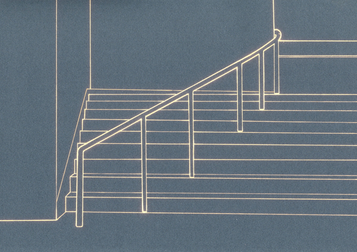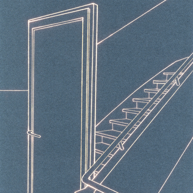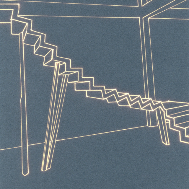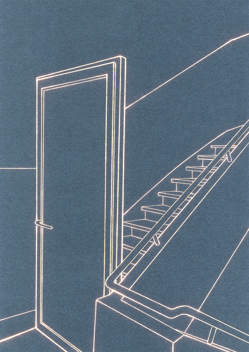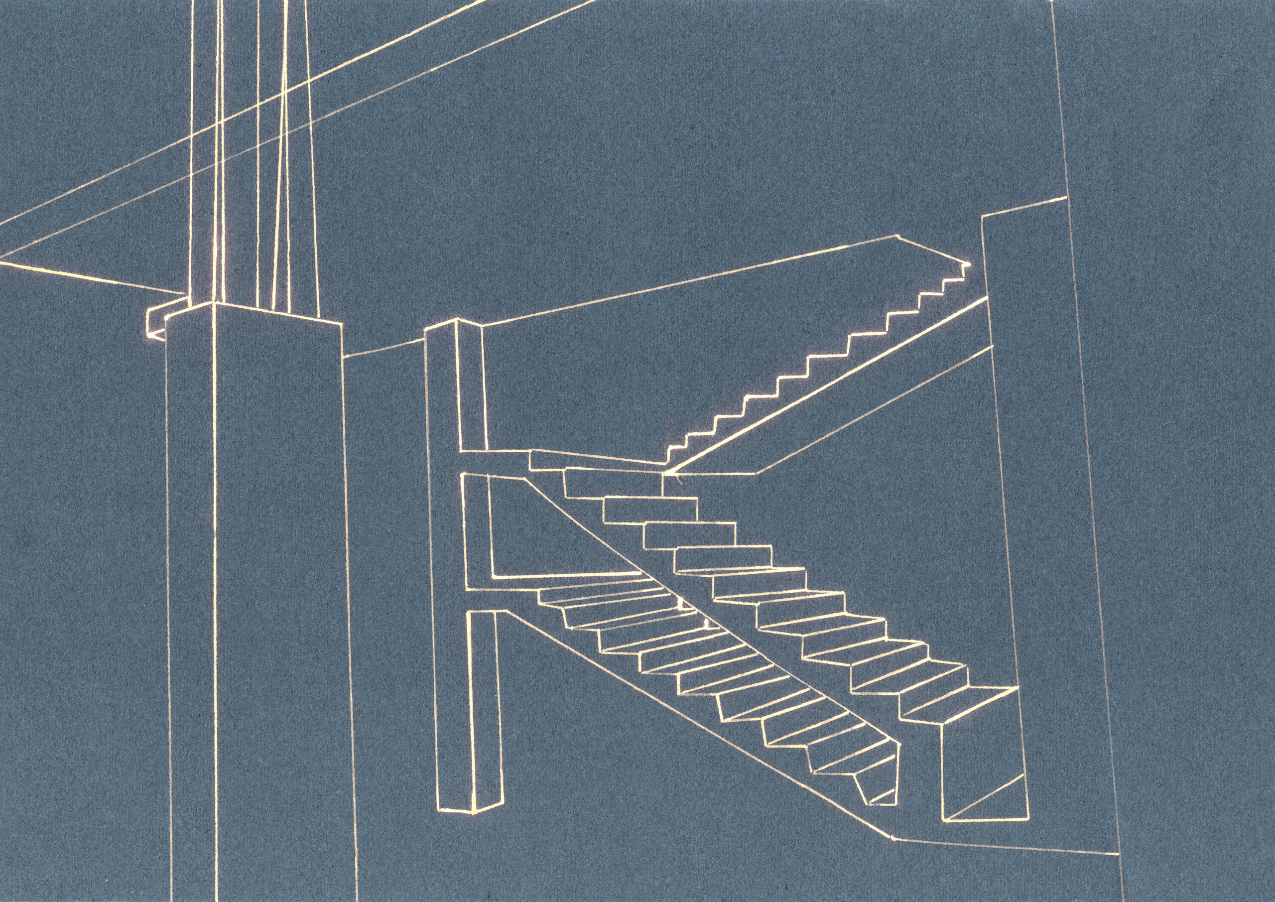 In an expansive series of architectural drawings, Badry continues his speculation on non-functional objects, through depictions of seemingly impossible, but actually existent homes. Applying acid bleach to coloured paper, Badry uses this common household cleaning material to render his drawings. Buildings perch precariously on narrow bases, houses crowd one another like shoppers in a queue, and aspirational towers teeter tentatively over absent cityscapes. Borrowing the blueprint-like aesthetics of lighter lines on a dark background, these drawings, ironically, propose plans for an inherently unplanned phenomenon, referencing the politics of informal housing.