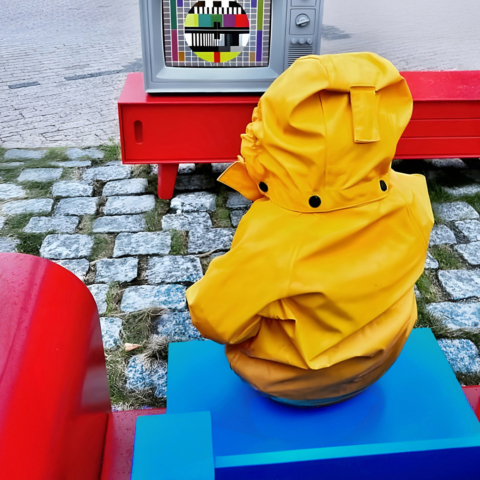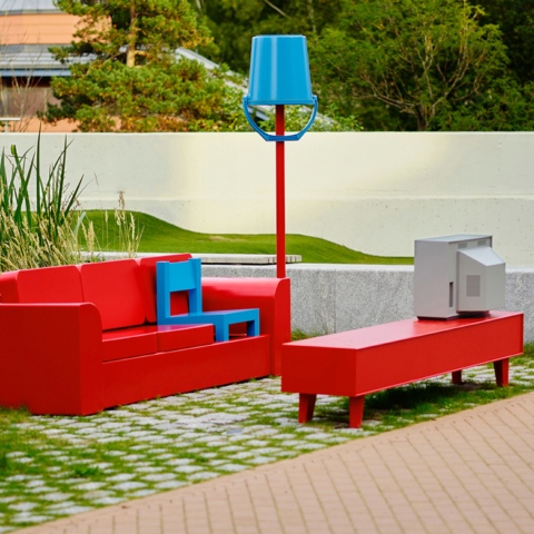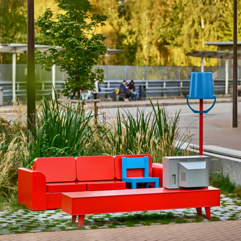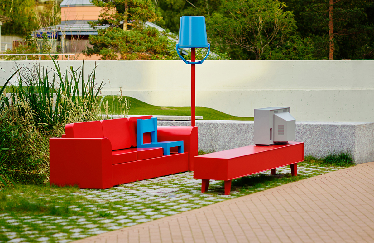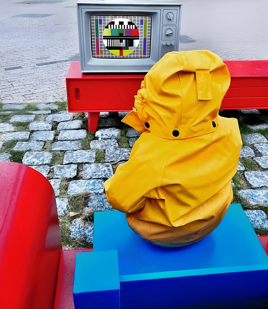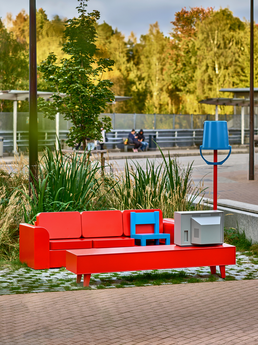 A permanent public artwork funded by Oslo Kommune and created in collaboration with Nabil Zaman, constructed from aluminium and installed in Holmlia Center. Includes a working TV that loops affirmative messages in various languages.