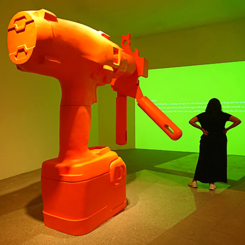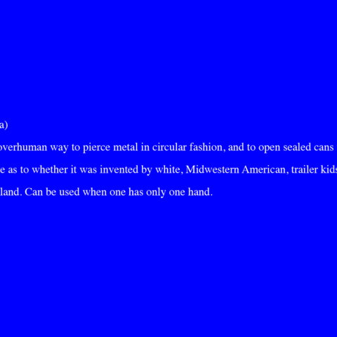 On Language, non-alphabetical flux is shaped by shared practice and mutual support. Various Names of a Provisionary that Lasts is a project that examines thinking models behind taxonomy and etymology—how names are formed for collective behaviors, mindsets, spaces, and objects. The project convenes artists and writers to propose a term for a hybrid tool (a can opener attached to an electric drill), seeking a description born from the same necessity that produces such provisional devices.